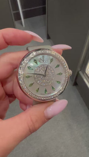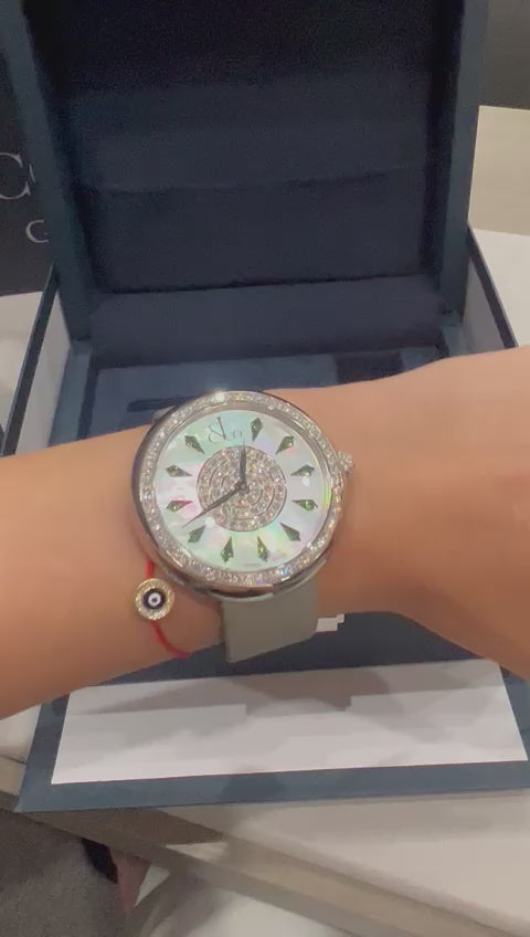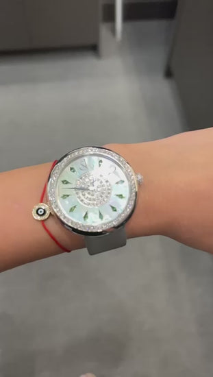 Dial: White Mother of Pearl Set with 11 Tsavorites Hours Markers; Dial Center Pavé Set with 50 Round White Diamonds(≈ 0.66ct.); Hands: Leaf.
