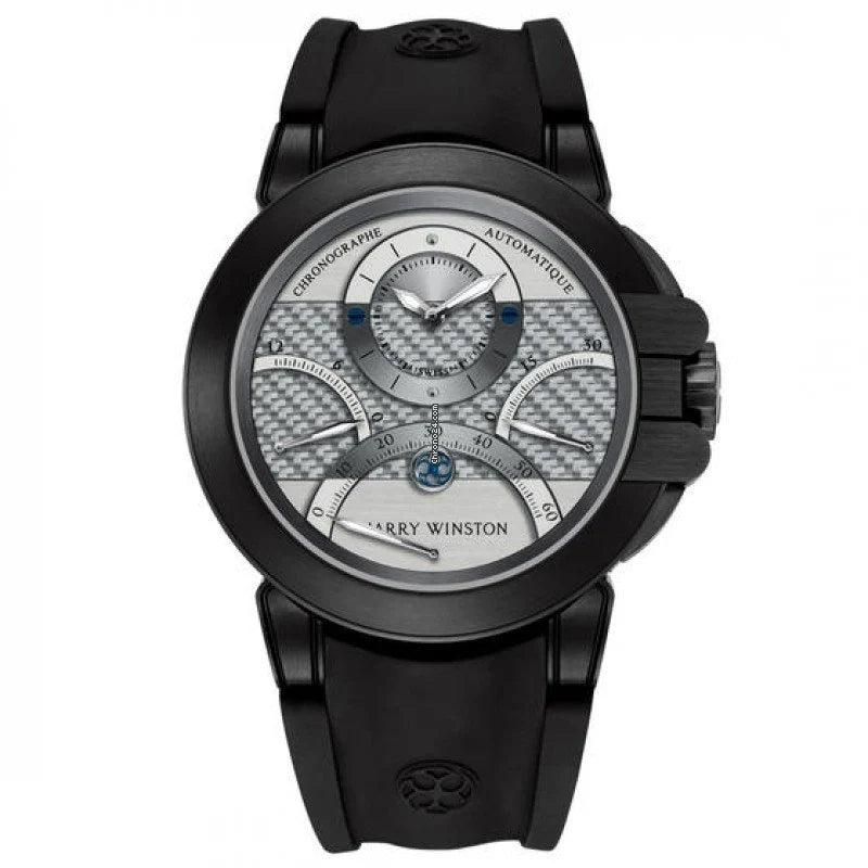 Black zalium case with a black rubber strap. Fixed black zalium bezel. Silver dial with luminous silver-tone hands and index hour markers. Dial Type: Analog. Luminescent hands. Chronograph - three displays showing: 60 second, 30 minute and 12 hour. Automatic movement. Scratch resistant sapphire crystal. Transparent case back. Round case shape. Case size: 44 mm. Case thickness: 12.50 mm. Deployment tang clasp. Water resistant at 100 meters / 330 feet. Functions: chronograph, hour, minute, small second.