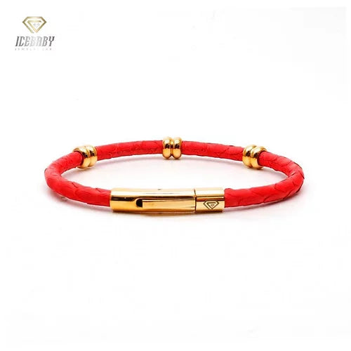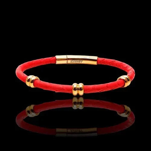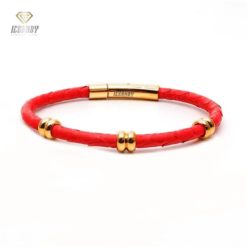 Python leather, triple beads, Bracelets 18K yellow gold (Stainless Steel);18K white gold (Stainless Steel).