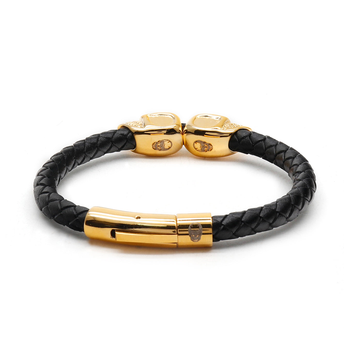 Aside from the beautiful message of the bracelet this item is also expertly crafted and features a braided calfskin body with two large skulls joined in the centre. These skulls are metal and are available in both black and gold depending on what suits the general style of our customers best. The bracelet is also presented in a lovely box and has a truly high-quality feel to it. The simple yet bold design pairs well with most types of clothing making it an item that can be worn every day on any occasion.